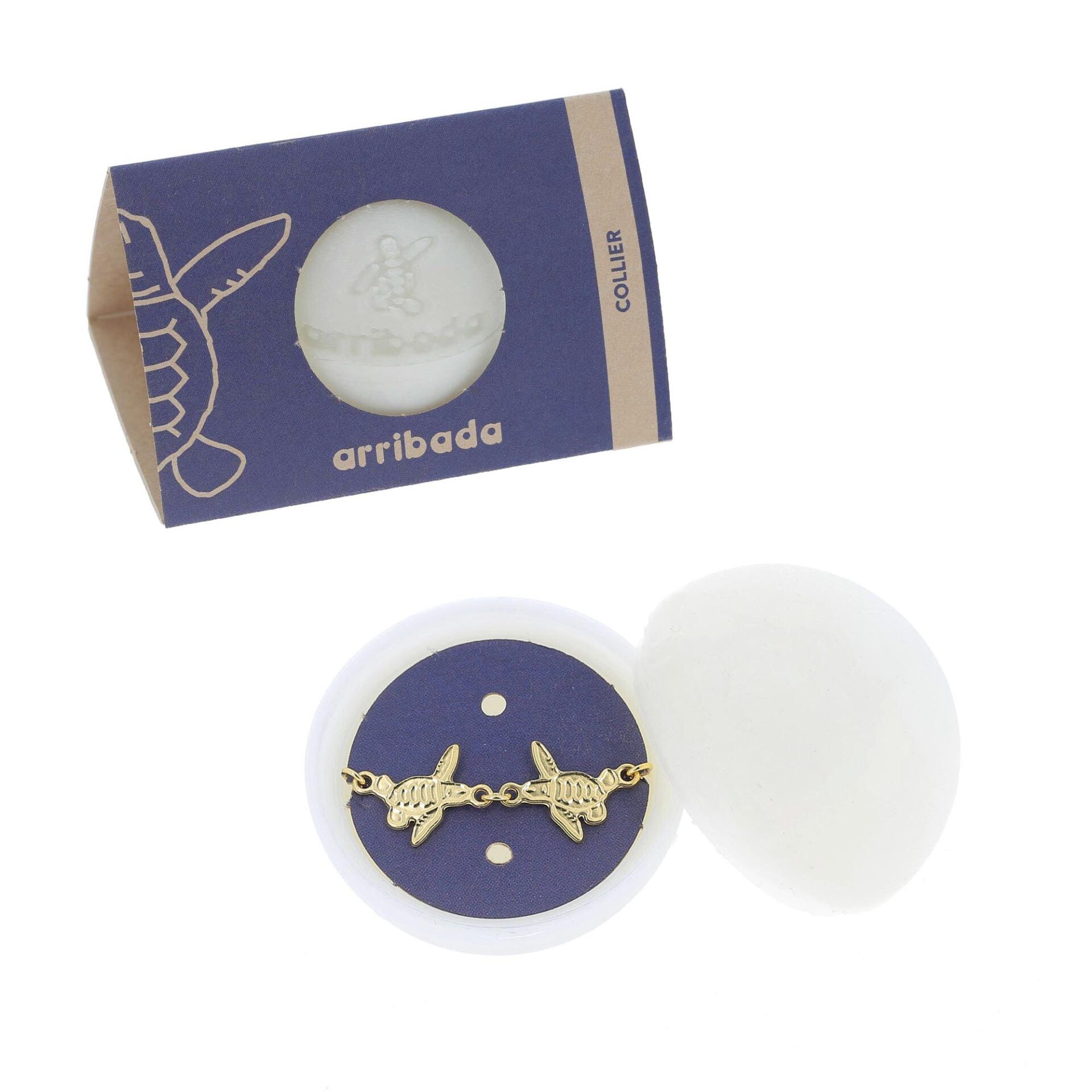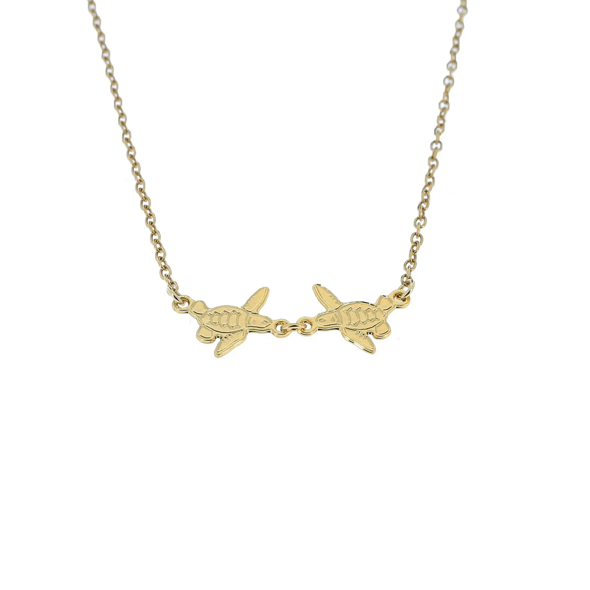 Avec son pendentif aux tortues juvéniles finement gravées, ce collier en laiton doré à l’or fin se porte avec délicatesse et légèreté autour du cou. Seul ou en parure, il complète subtilement votre look de tous les jours.