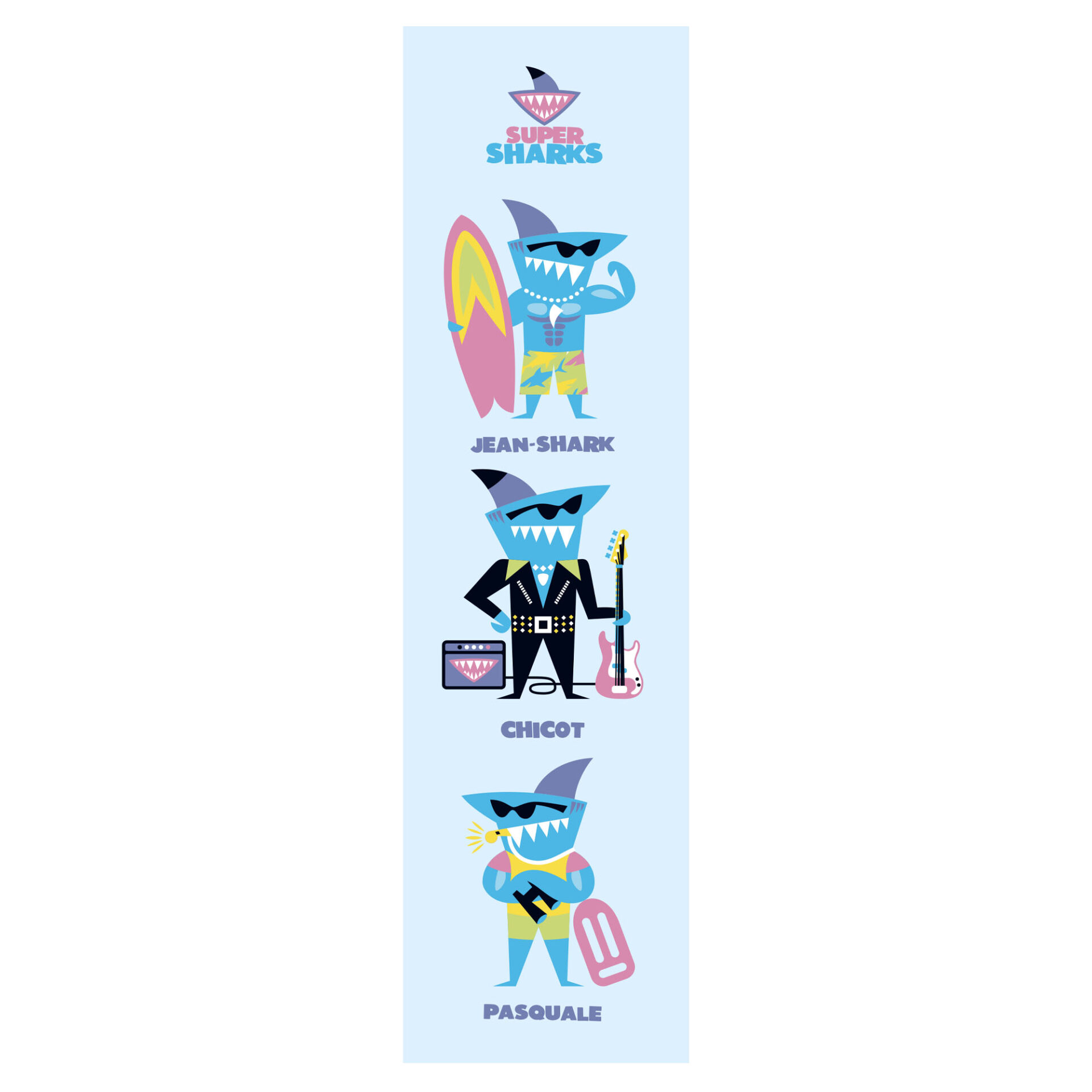 Ces Super Sharks forment une sacrée équipe ! Un gang de requins, une bande de potes à l’écoute et toujours prêt à venir en aide. Seigneurs des mers, ils sont des maillons essentiels à l’équilibre des océans.