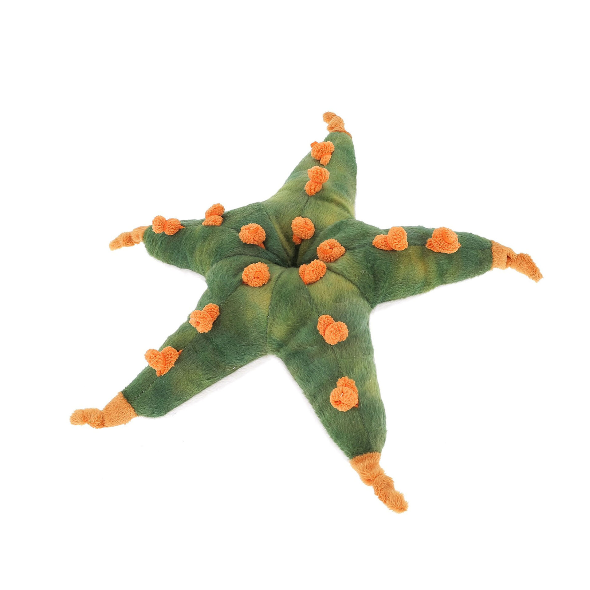 Coup de cœur pour cette étoile de mer en peluche. Avec son tissu aux reflets irisés et ses protubérances colorées, elle ne passe pas inaperçue dans un coffre un jouet !